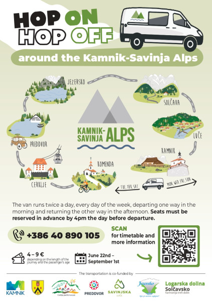Between 22nd of June and 1st of September, there will be a shuttle organized twice a day around Kamnik - Savinjske Alps.